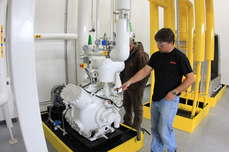 Ammonia safety is a critical part of an ammonia operator’s role so ammonia safety training is emphasized in the ammonia training lab. Ammonia safety training includes, but is not limited to, the properties of ammonia, ammonia SDS, PPE training, oil pot draining, emergency cutouts, and equipment pump-out. In addition to ammonia safety, electrical safety is practiced and stressed in the training center.